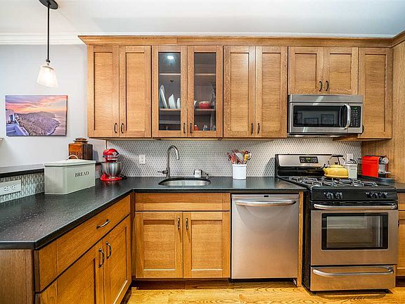 Past an expertly restored brick facade and Moroccan inspired foyer lies a brilliant backyard oasis and gorgeous renovation on Bloomfield Street. A smart & stylish 1 bed + home office/den with deck and landscaped garden, this home has it all. Open chef's kitchen features SS appliances, contemporary oak cabinetry, hammered black granite counters and custom tile backsplash. Ample living room offers exposed brick, recessed lighting, hardwood floors and gas fireplace with handsome marble surround. Master bed and bright home office/den with glass door to garden features high ceilings, crown molding and excellent closet space. Indulgent bath shines with glass mosaic tile, marble vanity & extra deep soaking tub. All this plus CAC, smart-home security system, smart thermostat, in-home laundry and storage shed in the garden. Recently reduced property taxes, great capital reserves and located on one of the most desirable blocks in town, outside the flood zone, with easy access to Hoboken's best: world-class shopping, dining and entertainment, one of THE most dramatic waterfronts, and easy transport into NYC via Path, bus or ferry. Rental parking available nearby.