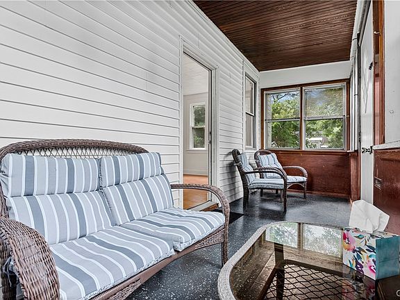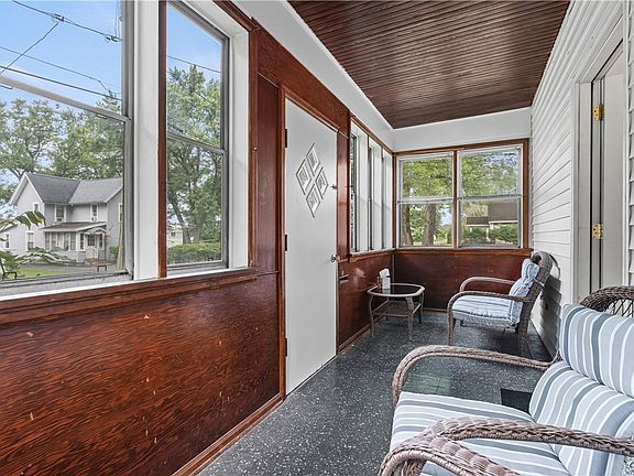Who doesn't love a cute ONE LEVEL home, with a cozy and most quiet backyard to go with?! Perhaps an overly spacious kitchen with sliding glass doors leading onto a back deck to enjoy those summer nights? A bundle of bonuses found within this Bungalow! This property features a kitchen sure to make the chef of the home smile big-time, 2 bedrooms and one larger bathroom, (with washer and dryer hook-ups within). One of the bedrooms is oversized, while the other can serve an array of uses. The living room and sunporch serve as wonderful places of enjoyment, familial fun and retreat after a long day - a floor plan that can be easily transformed into something more! Property Updates and highlights include but are not limited to; interior paint ALL (2024), deck added (2017), freshly stained deck (2024), replacement windows throughout, NEWER sliding glass doors (2018), YOUNG forced air gas furnace (replaced 2017), exterior foundation parged & coated (2022), roof (2013), NEW light fixtures (2024), NEW refrigerator (2024), replacement flooring (kitchen), exterior paint and treatment (2024), some hardwood flooring, DOUBLE one stall garages and a basement fit to satisfy all your storage needs.