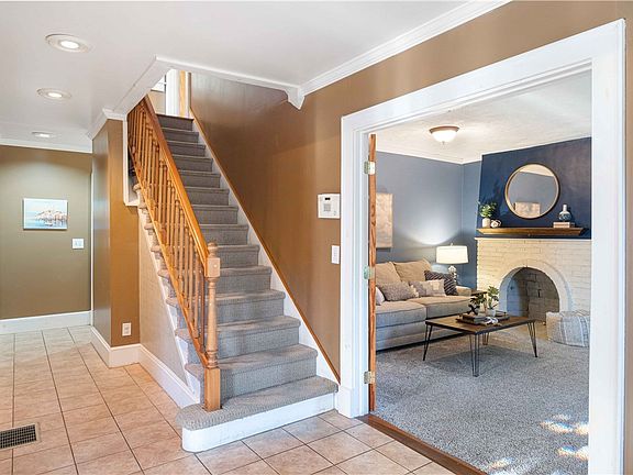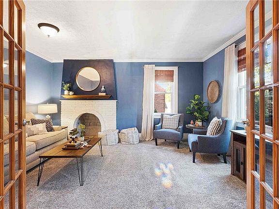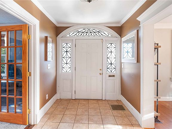 Classic Colonial with modern updates on a double lot! Leaded glass details surround the front door and lead you into the formal entry. French Doors open into a warm and inviting living room with a brick decorative fireplace and rich blue walls. A cook's dream kitchen awaits with granite counters, a five-burner gas Electrolux oven with a stainless steel hood, recessed light, and a large kitchen island. The eat-in dining room allows friends and family to gather in the heart of the home. One of two full baths is also located on the first floor as well as the laundry. Upstairs, four spacious bedrooms each have ceiling fans and overhead lights along with unique designs to make them stand out. A large full bath completes the second floor. The favorite room in the house is the finished third floor, used as a playroom, entertaining space, or primary bedroom, the possibilities are endless! A huge fenced-in yard with a wrap-around deck is the perfect outdoor space. Make this your new home.