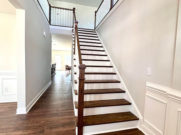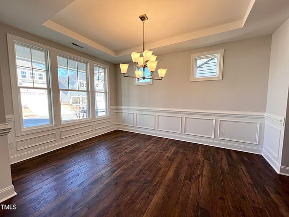Desirable Jessamine floor plan! Rocking chair front porch - enter into a grand 2 story foyer with wood pickets. Kitchen features huge island with quartz countertops, upgraded cabinets, & gas appliances! Spacious walk-in pantry with MDF shelving. Bedroom on main floor - perfect for office space or guest space! Laminate flooring throughout first floor. Oak tread stairs with open wood rails lead to an airy landing and loft overlooking entry. Spacious owner's suite and on-suite with a dream sized closet. 2 additional bedrooms up with full walk-in closets. Baths and laundry feature tile flooring. Amazing amenities!! 1st year of pool/water park included as paid membership. Public access to dog park, splash pad, playground, walking trails park, and walking distance to delicious local restaurants & nightlife. Located next to Knightdale Station Park, this community has endless opportunities for outdoor activities & community gatherings!
