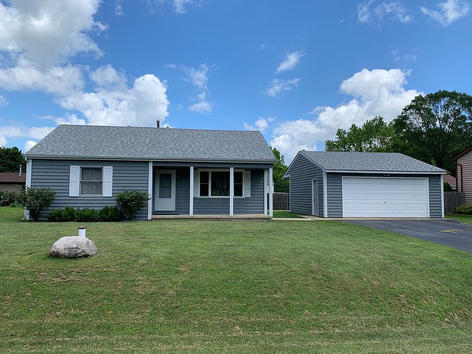 Beautifully maintained cedar sided ranch features a newer roof with upgraded architectural shingles. 19' x 5' covered porch. 3 bedrooms, 1 bath and a finished basement. The updated bathroom features waterproof vinyl flooring, solid surface vanity top and a beautiful ceramic tiled tub surround. The eat-in kitchen boasts laminate flooring, updated appliances, and access to the backyard for grilling. The large backyard is partially fenced and includes a 22x10' covered patio behind the 2 car garage that could be screened in the future. Bedrooms are generously sized with spacious closets. The full basement is partially finished with a family room, 3rd bedroom and plenty of storage or future living space. Would make a great in-law set up. Walk to Moraine Hills State Park. Updates - Roof 3/15, some new double hung windows 4/2015, garage door opener 4/2019, carpet LR, BR, Hall & stairs to basement 4/15, Dishwasher/washer/dryer 4/2015, stove & refrigerator 2014. Meticulous inside & out.