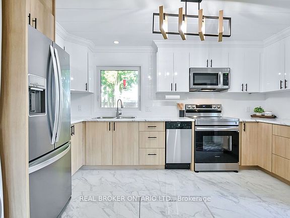 BEAUTIFULLY UPDATED, NEW KITCHEN, FRESH PAINT THROUGHOUT! Tucked away on a quiet dead-end street, this beautifully renovated home sits on a spacious lot that offers both privacy and room to enjoy the outdoors. With two separate driveways, theres no shortage of parking and plenty of flexibility for families, guests, or hobby vehicles. Inside, the home has been fully updated with stylish modern finishes that blend comfort and function. Freshly painted throughout, every space feels bright and inviting. The brand new kitchen is the heart of the home, featuring sleek cabinetry, modern fixtures, and plenty of prep space for everyday living or entertaining. This property is an excellent fit for first-time buyers, young families, or anyone who loves nature and a quiet lifestyle without giving up convenience. Just minutes from Lake Simcoe, you'll enjoy easy access to boating, swimming, and year-round recreation. At the same time, nearby amenities including shops, schools, and services make daily living simple and stress-free. Notable updates provide peace of mind and style: house siding and windows (2019), garage siding (2025), garage roof (2024), front porch (2022), interlock walkway (2024), bathroom (2021), and recent flooring, shiplap accents, and kitchen (2024/2025). With its large lot, modern updates, and ideal location, this home is move-in ready and offers the perfect balance of tranquility and convenience.