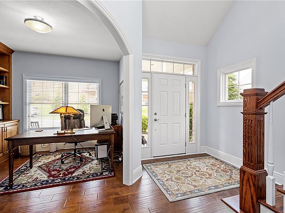 Much larger than it appears, this gorgeous home on private, quiet street w/wooded views & the highest quality finishes & appliances! Eng HW floors on 1st & basement levels w/wall to wall in all BRs. Two-story entry features 3 windows, oak staircase & archway to office w/wall of built-ins. Living, dining & kitchen areas are open concept w/vaulted ceiling & gas FP w/custom built-ins & TV ready mantle. Gourmet KIT features Jenn-air appliances & Sharp MW. Sunrm features cathedral ceiling & triple panel slider to deck w/new screened in porch ('21) & open air deck. Owners’ suite features tray ceiling, upgraded bath w/soaking tub, tiled shower stall, double bowl vanity & walk-in closet. Powder rm, mudrm, laundry & entrance to garage also on 1st. Two spacious BRs, another full bath, loft area & much storage on 2nd fl. Finished gamerm w/gas FP, 4th bedroom & powder rm are located in basement. The 38'x25' GR features built-in bar w/wine & beverage fridges. Sliders open to over-sized patio area.