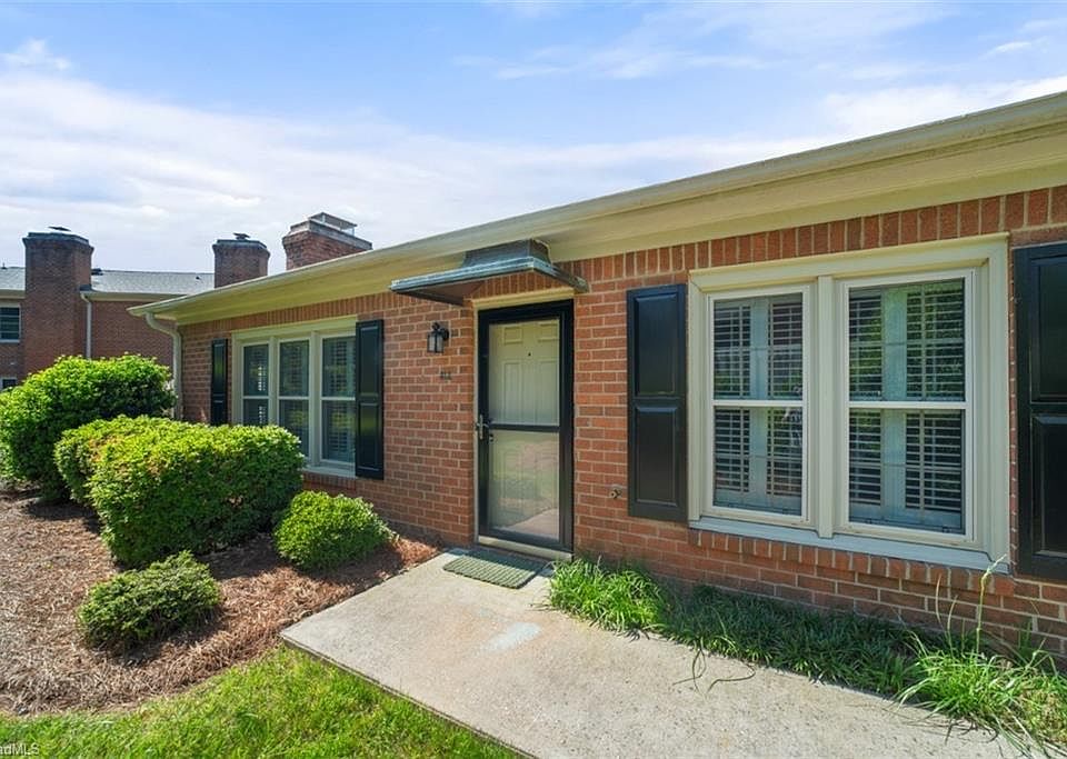 OFFER DEADLINE Tuesday 5/7 @ 5:00. This is the one-level end unit townhome you have been waiting for! Located in popular Lytchfield Place, this one-owner property has been lovingly maintained and updated. Hardwood floors in the entry, hallway, hall bath & all living spaces. Kitchen with white cabinets, tile backsplash & granite opens to both breakfast room & living room with gas logs, & includes bar seating. Both baths with quartz counters. Living room opens to private brick patio. One-car garage steps into kitchen/ breakfast area. Plantation shutters add a lovely touch! Peaceful location, low maintenance living, and convenient to shopping, restaurants and more!