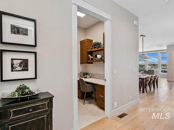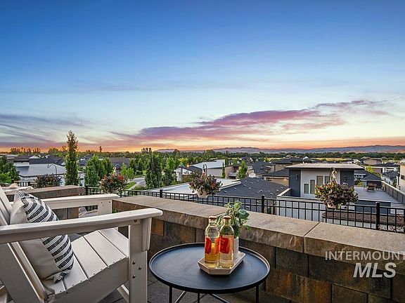 SPECTACULAR VIEWS, MASTER ON MAIN LEVEL, IN LAKEMOOR – ONE OF IDAHO’S PREMIER GATED COMMUNITIES. Walking distance to CRAVE, luxury movie theatre, the Boise greenbelt & more. Welcome to contemporary living in Eagle. This home offers a sleek, open-concept floor plan. Expansive windows bathe the interior in natural light with awe-inspiring north-facing vistas of the Boise River, Bogus Basin, & the Boise foothills. The well appointed kitchen is a chef's dream: modern appliances, ample counter space, center island w/ seating & large pantry. Main-level primary suite w/ an elegant ensuite bathroom. 2 outdoor spaces beckon: a tiered hillside patio on the main level, complete w/ BBQ area, dining space, water feature, paved lower level featuring a 5' firepit & a second-level patio off the bonus space. This residence offers ample storage, a fireplace, an oversized laundry & epoxied floor in the garage.