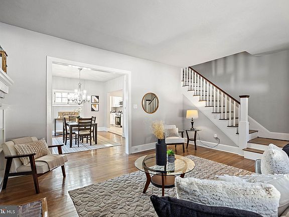 Welcome to 812 E Main St in the Collegeville Boro. This twin home sits directly across from the beautiful Ursinus College campus. As you enter this home you'll be shielded by the large covered front porch. All of the original hardwood has been restored and the house is freshly painted. The living room has built-in bookshelves, a wood burning fireplace and a wooden accent wall. While this home has been newly renovated, many of the original characteristics were saved in order to keep the charm. The living room opens up to the large dining room which is perfect for entertaining with an abundance of natural light. Off of the dining room you'll find the new half bathroom which provides convenience for guests. The kitchen is freshly renovated with luxury vinyl plank flooring, white shaker cabinets, stainless steel appliances (including a new gas range) and quartzite countertops. There is plenty of counter space in this kitchen as well as windows to look out at the long and flat backyard. The kitchen has a side door leading out onto an elevated back deck. Upstairs you'll find three bedrooms, all with restored original hardwood and doors. The upstairs bath has also been renovated with luxury vinyl plank flooring, a large vanity for storage and a subway tiled tub/shower combo. There is also a walk up attic in the primary bedroom to provide extra storage. The unfinished basement contains the laundry area, as well as a walkout door to the backyard. The house was just converted from oil to gas heat and 11 of the windows are brand new. A detached garage on the back of the property allows for storage. It's possible to install a long driveway in the backyard for extra parking.