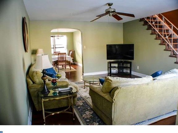 Your search is OVER!!!! You'll love the outside Patio! Enter the Foyer which opens to the large Living Room w/ceiling fan & NEW hardwood flooring thru to formal Dining Room w/wall a/c unit, Eat-In Kitchen has a ceramic tile floor, electric cooking, dishwasher, refrigerator & access to FINISHED Basement with bar, Powder Room, laundry area w/washer & dryer, storage & outside exit to driveway. 2nd floor boasts a Main Bedroom w/wall a/c unit, ceiling fan, 2 closets & NEW W/W carpet; 2 additional Bedrooms with ceiling fans, window a/c units + great closet space, Hall Bath w/NEW vanity, beautiful wood ceiling & skylight. All smoke detectors are hardwired. **Seller is married to Listing Agent, a licensed PA Realtor**