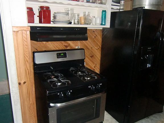 Larger than it looks! This home has two bedrooms on the main level, plus another bedroom and a non-conforming bedroom or office in the basement. The black kitchen appliances are included, too - there's a new double sink & faucets, range hood, and a gas range and near-new refrigerator. Although not totally finished, there's the makings of a second full bath in the lower level! Storage shed, central air, hardwood floors.