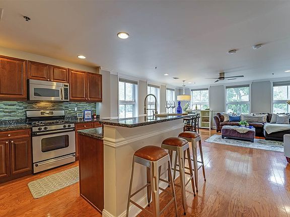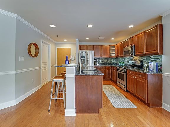 Elegance abounds in this impeccably maintained 2 bed plus den/ 3 bedroom Northeast corner unit home in the heart of Hoboken. Home resides in the reputable Huntington- a steel and concrete, elevator building in the heart of Hoboken adjacent to the lovely Columbus Park. Features include granite and stainless steel appliances in the kitchen, washer/dryer in unit, a new HVAC system, ceiling fans, hardwood floors and plenty of closet space including a walk-in closet in the master bedroom. Crown molding and recessed lights in the living room, and updated baths. This home does not have a residence beneath it, therefore noise complaints from a neighbor on a lower floor will not occur. Well manicured common courtyard and gym included. Hallways were recently updated! Steps to NYC transportation and restaurants.