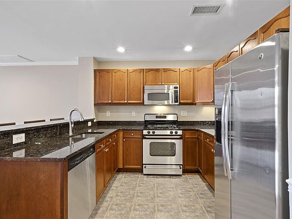 Step into your new home on 8th & Grand St at the sought-after Huntington! This gorgeous 2 bed/2 bath features bright and open unit, a modern kitchen with stainless steel appliances, granite countertops/backsplash, lovely breakfast bar and cherry cabinets with lots of space. Large Primary Bedroom to enjoy the comforts of home all throughout the year. Two marble bathrooms, recessed lighting, large closets, crown molding and hardwood floors accompany this stunning home. Central A/C and in-unit washer/dryer add to the convenience of the professionally managed, steel and concrete building. Enjoy exercise and fresh air in the building's gym and courtyard. Parking included with unit. Your new home is simply a turn-key away!