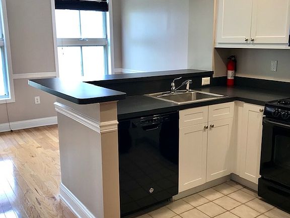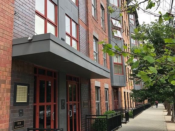 Beautiful, over sized 760 sq. ft. studio on the top floor of this modern, elevator building. Can be used as a one bedroom located in the desirable Huntington building, a steel & concrete building located right next to Columbus Park. Unit features central air, hardwood floors, crown molding, washer/dryer in unit, common courtyard and exercise room. Close to bus to NYC, shops and restaurants. This spacious studio is larger than many 1-bedrooms and is easily divided into a dedicated sleeping area, separate living room and dining room. Available now.