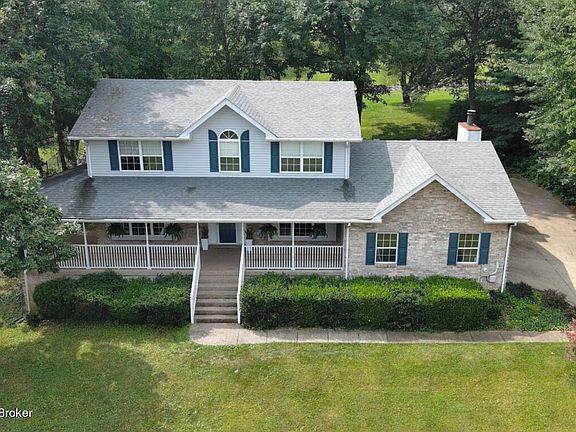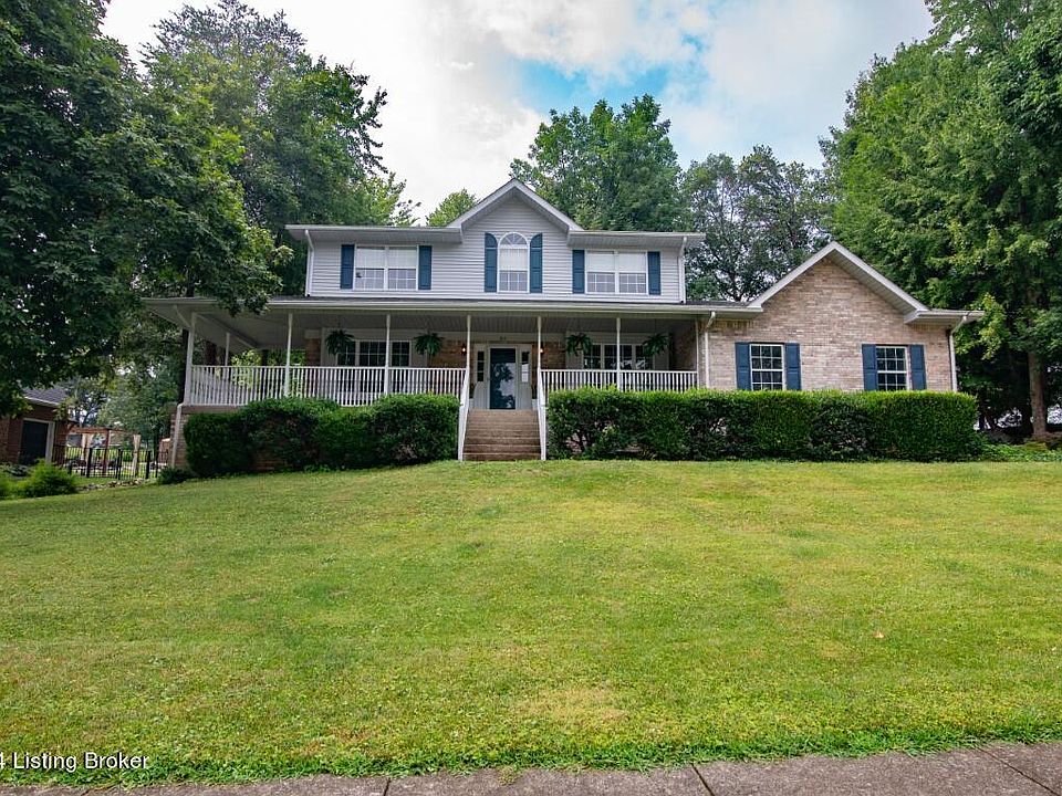 Welcome to 812 Greenview Circle in Elizabethtown! VA assumable loan at 2.6%. This spacious 4-bedroom, 3-bathroom home is ideally located on the 11th hole of the Heartland Golf Course and collects enough lost golf balls to play all year! It's in walking distance to the new multi-level driving range and Sports Pub which is a great place to catch an evening meal. The property boasts a backyard view that will remain green and well-manicured all year round. The neighborhood offers executive style homes, no HOA, and replete with Kentucky country charm. The home has a large wraparound porch and tree lined drive. It is a rustic layout, with wooded privacy on either side and a small fire pit in the backyard for fall evenings. Inside the home there is a spacious sitting area off the kitchen with a cozy gas fireplace, abundant kitchen cabinetry, and large windows upstairs and down. Oak floors extend throughout the house, and the basement offers versatile space for living and/or storage. There are many newly updated features to include the roof, expansive back deck, water heater, kitchen sink, granite counters, upstairs flooring, first level shower, crown molding, wainscoting, and indoor & outdoor paint. With this sale comes all new (2022-2023) appliances - washer/dryer, refrigerator, dishwasher - and a mounted 55" flat screen 4K