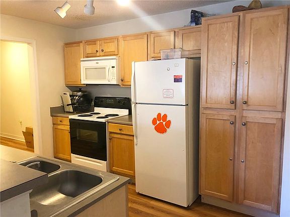 This 3 bedroom 3 bathroom Hartwell Community Condo in Harts Cove is only minutes from Clemson University with a private shuttle service provided to campus. Especially designed for the student in mind with each bedroom having a built in desk with shelving and its own full bath. This is a move-in ready unit, with all appliances including a washer and dryer in place. Recent updates include new HVAC in 2017 and premium waterproof EVO laminate flooring throughout living room, hallway, kitchen, and one bathroom. Unit is conveniently located on the ground level with parking spaces right out front and quick access to shuttle bus pick up/drop off area. Located in the amenity rich Harts Cove community with a clubhouse, pool, fitness center with tanning bed, computer room, volleyball, basketball, fire pits, grilling area, and dock for swimming and boats. Excellent investment opportunity with rental history.