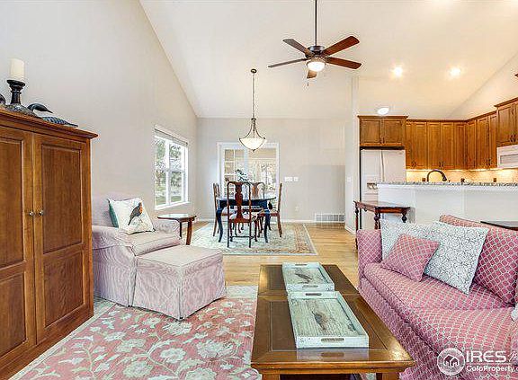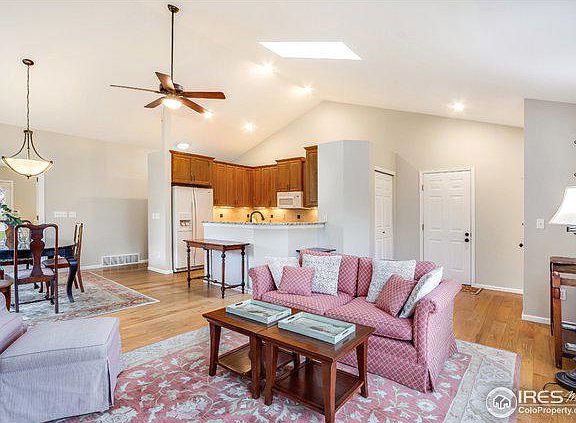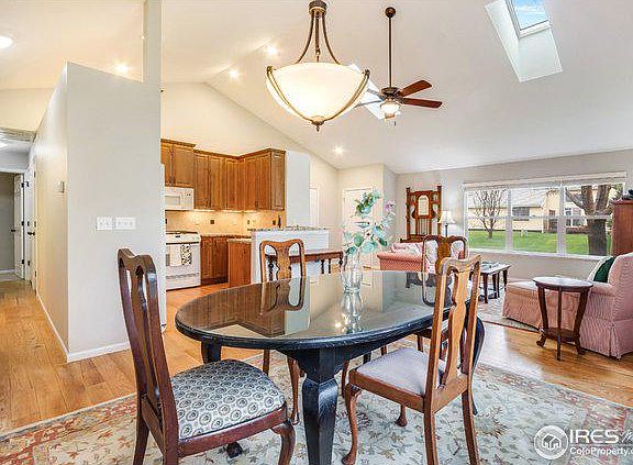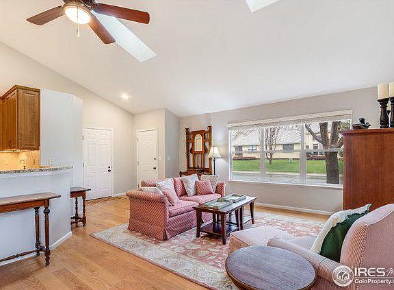 Main floor living in Central location just blocks from Rolland Moore park, Spring Creek Bike Trail, CSU and USDA offices. Bright and light open floor plan end unit townhome with vaulted ceilings, upgraded 42" kitchen cabinets, slab granite counter tops, wood floors. Freshly painted interior, brand new carpet in the bedrooms. Primary bath has been recently upgraded with tile floor, tile shower surround, sleek glass enclosure, and vanity. Both bedrooms are very spacious. There is a deck off the second bedroom. Fantastic quiet side street location. This home has been pre inspected. Please email Laura for a copy of the report.