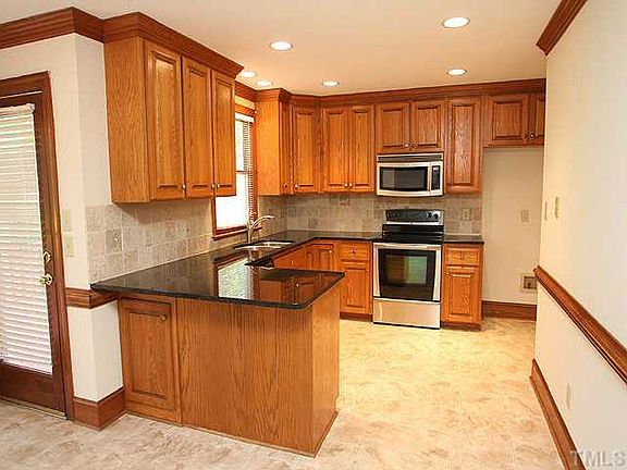 Beautiful home in desirable N Raleigh close to I-540 ! Close to Baileywick YMCA, commute & shopping! Kit updated w/granite ct, stainless appl; Sep dining rm; Family planning workstation in kit / built-ins in FR & bonus rm (4th BR).HUGE FR, deck & walk up attic! Lg garage; Lot backs to easement providing additional privacy! Jetted tub in master bath.REO w/Sp Warr Deed