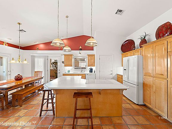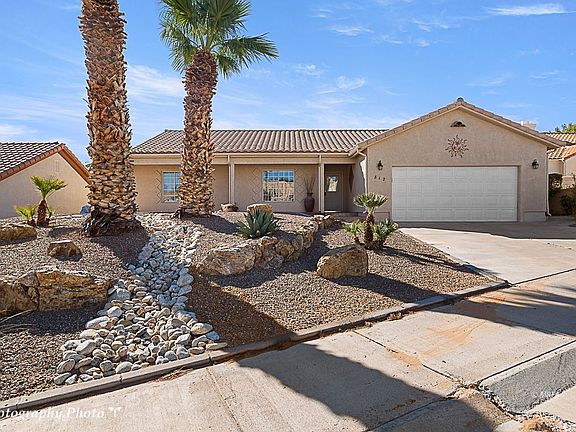 EXCEPTIONAL VIEW in a non-HOA community. Mediterranean Style Tile welcomes you into the home and extends into the 420 sq ft. Sunroom. Situated on an elevated ot this home offers an awesome view of the mountains and the city. Low maintenance landscaping surrounds this house which is located on a quite cul-de-sac off Chaparral Dr., " close to everything". From the sun room "fun room" or the paver patio enjoy the view. The added sunroom guarantees plenty of natural light. Two car garage with shelving and handy work sink and workbench are a bonus. The kitchen has solid surface counter space and features maple cabinets, a pantry and dining area. Pottery shelf lighting adds depth to the great room. Under the counter bar stool seating also keeps the kitchen lively while entertaining. Third bedroom has a Murphy bed that makes it easy to invite guests but also have the office that everyone wants and needs. What you see is what you get. EVERYTHING IN THE HOME STAYS appointed with stylish furniture that was hand picked for this home. Come and enjoy a Mesquite home and all the community has to offer, just 90 miles to Las Vegas, NV, and of 40 miles to St George UT.