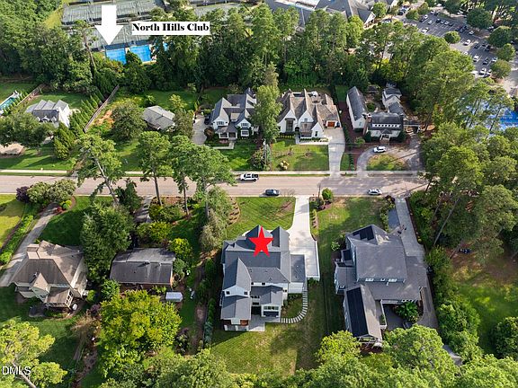 Move-in ready and better than new, this exceptional 2024 builder's personal residence offers a rare combination of architectural refinement, thoughtful flexibility, and an unbeatable Midtown location. Situated on a private .45-acre lot just one block from North Hills Club, the home also offers easy walking access to North Hills' premier dining, shopping, and entertainment, with quick access to I-440. - Designed for elevated everyday living and effortless entertaining, the home features 5 bedrooms plus a flexible walk-out lower level, 5.5 baths, and a 3-car garage with epoxy flooring. Hardwood floors run throughout, complemented by custom millwork, a striking white oak staircase feature wall, Pella casement windows, 3 gas log fireplaces, central vacuum, irrigation, and landscape lighting. - The main level showcases a first-floor primary suite and a first-floor guest suite or office, along with dining, laundry, and a truly exceptional chef's kitchen. The kitchen and scullery are appointed with inset cabinetry, a statement soapstone island, Butler's pantry with cane-front cabinetry, nugget ice maker, hammered brass sink, and a Wolf 48-inch gas range—perfectly suited for both intimate evenings and large-scale gatherings. - Upstairs, three additional bedrooms and two-and-a-half baths are joined by two offices or flex rooms, a media room with surround sound, and a generous walk-in linen closet, offering versatility without sacrificing luxury. The finished walk-out lower level is designed as a true flex space and may function as a 6th bedroom, executive home office, guest suite, fitness studio, or game lounge. It includes a full bath, wine room, wet bar with Sub-Zero refrigerator, gas fireplace, polished concrete floors, billiards space, and abundant unfinished storage. - Outdoor living is equally refined, anchored by a cathedral-ceiling screened porch with Phantom Screens, ipe hardwood flooring, and a stunning Isokern fireplace. A Wolf outdoor gas grill, oversized copper gas lanterns, and a beautifully private backyard complete this exceptional offering.