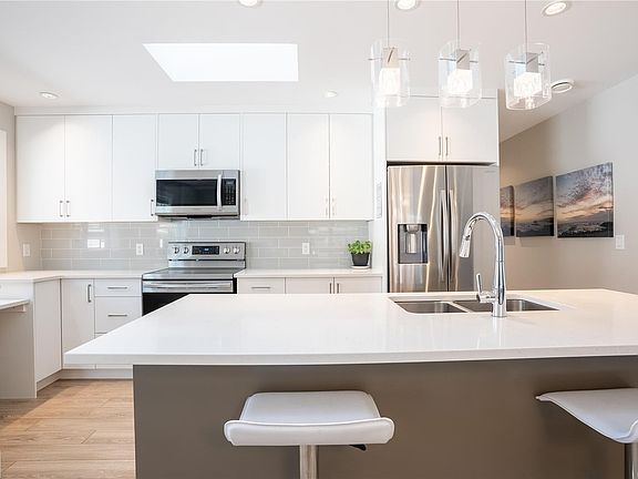 South-facing yardModern kitchenQuartz countertopsStainless steel appliancesIsland seatingWalk-in closetPrivate deck