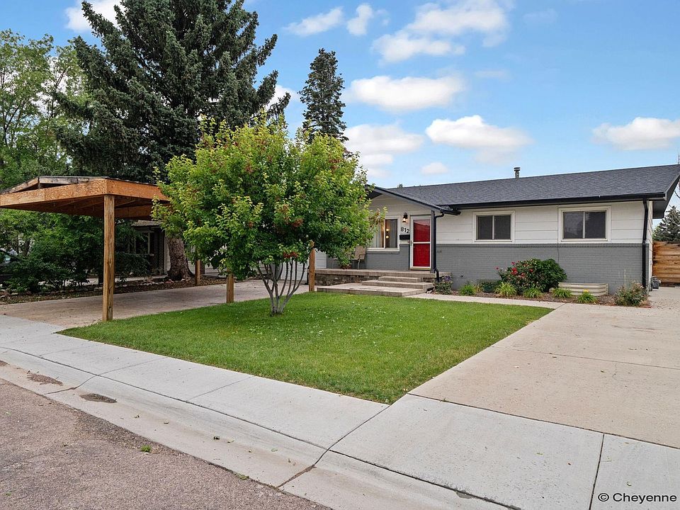This beautifully updated 4-bedroom, 2-bath single-family home offers the perfect blend of style and functionality in a cozy, well-established neighborhood. Step inside to discover Luxury Vinyl and tile floors throughout and an inviting layout designed for comfortable living. The spacious primary suite features a large walk-in closet and an en-suite bath complete with a relaxing jetted tub and separate shower. The heart of the home is the stunning kitchen, featuring an oversized quartz island, abundant cabinetry, a large pantry, separate dining space and direct access to the stamped concrete patio – perfect for entertaining or relaxing outdoors. The backyard is fully landscaped and includes a utility shed plus a versatile outbuilding ideal for hobbies, a workshop, or additional storage. Parking is a dream with two front driveways, one offering a large carport, and alley access in the rear with space for four or more vehicles or even an RV. Enjoy a quiet, comfortable lifestyle just minutes from parks, grocery stores, gyms, and other local amenities. This home is move-in ready and full of thoughtful updates – don’t miss your chance to make it yours!