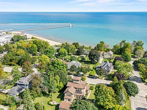 Wow! The character, the space, the views of Lake Michigan make this house a must-see! South front door opens into original house with dining room, living room, den and kitchen & is attached to 26"x14" addition which was used for a business and has 10 individual rooms. Upper level has 5 bedrooms and two full baths—the primary suite and 20x15 bedroom were additions along with spectacular sunroom offering views of Lake Michigan. LL is spotless with two enormous rooms for entertaining, as well as individual rooms for various hobbies and activities. There are two staircases to access both upper and lower levels. Back-entry room connects house to two-car garage. Hot water heat. Spacious lot with beautiful landscaping bursting w/colorful flowers throughout growing season and views of the Lake.