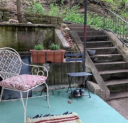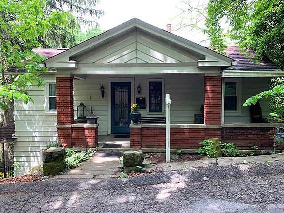 This charming cottage sits on a hillside lot with several pine trees, stone retaining walls, and a creek with a walking bridge to Brook Street. There is a porch on all three levels and an inviting mudroom . There are hardwood floors, plaster walls, and the house has a tranquil setting above the creek. The interior has a spacious living room, with a den and eat in kitchen. The floors were recently refinished on this level and there is a French door that leads to a side porch. The upper level has 2 bedrooms, a laundry room, mudroom all with hardwood floors, and a renovated bathroom. Some recent improvements include 15 new windows 2020, custom front door, new furnace 2018, new dimensional roof 2015, and bathroom 2014. There is room for a queen size bed in one bedroom and a full size bed in the other bedroom. The house was just repainted inside and is in move in condition and also includes a one year home warranty.