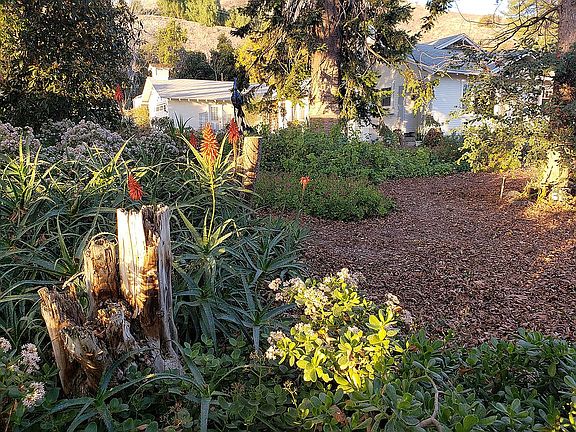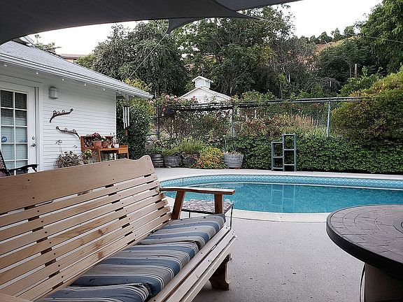 Single family home in rustic setting, surrounded by fruit, nut & shade trees along with many veggie gardens in historic neighborhood. Many resting areas to include 3 separate patios. The best country living within a short walk to downtown, schools, and shopping. Just new Solaris 30 year roof.