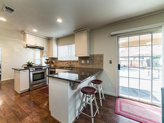 AMAZING opportunity to be on a large, cul-de-sac lot, +/-13,671 ft. with a pool and LARGE side yard (potential RV/boat/trailer parking) This home is ready for you to move right in. Walk into this well laid out home with vaulted ceilings, updated kitchen boasting granite, white cabinets, and stainless steel appliances. Spacious breakfast nook, formal dining room and eating bar plus the 4 bedrooms and 3 bathrooms. Take advantage of the quiet cul-de-sac, close to parks, schools and freeway access. The HVAC units were replaced in 2, the upstairs bathroom floor is heated, laundry room accommodates gas or electric dryers, and the cook-top can be gas or electric as well. Outside enjoy your own private oasis with a large pool w/waterfall, ample grassy area and mature trees. There aren't a lot of these kinds of lots available! Call today to see it in person!