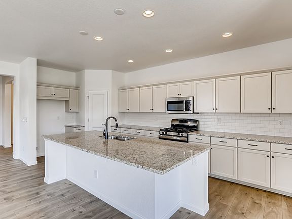 Showings by appointment only and required. Brand new ranch home in the Sky Ranch community, available July 2020. This is a one of a kind find with incredible interior finishes and even better location. The interior features extensive hardwood flooring throughout including both bedrooms. Luxury 12x24 tile flooring in the bathrooms and laundry room, granite and corian counter tops, and gorgeous shaker style silk cabinets. Step through the large 8x12 sliding glass doors out to your oversized covered back patio, perfect for entertaining on a private, large corner lot. The home fronts to a large community park with mountain views and includes 6' privacy fences and complete front and backyard landscaping. This is a rare find at this price point and won't last long. Schedule your tour today. Interior images are from the model and not reflective of the actual finishes for this home.