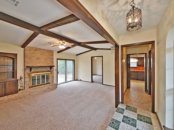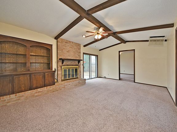Spacious and inviting living room off of marbled entryway. Brick fireplace with handsome wood cabinets and bookshelves. Beamed ceilings. Bright dining area with large kitchen and plenty of cabinets. Lots of hallway storage. New carpet and fresh paint. Big front yard and back. Sold-as-is. NOTES Sellers representative is licensed Texas Realtor(r) Buyer agents welcome 3% commission paid for full price offer. Listing agents - give me your pitch. Current owners have not lived in the house.