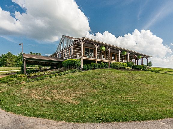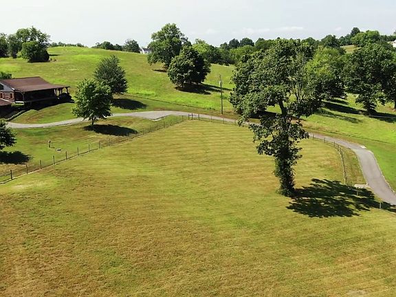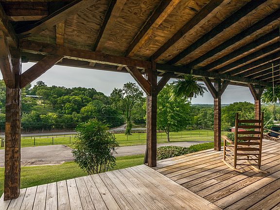 Amazing Tennessee sunrise and sunset views! 3.44 Acres - Welcoming winding paved drive, old red barn, oak, red and sugar maple trees, fence row and a porch swing on the 48 ft. covered front porch! Unique Custom built ins, cabinets, shelves, headboard, light fixtures, stained glass, carved wood, sliding barn doors, tin ceilings, stonework, Cherry & Acacia hardwood floors, vaulted ceiling, Exposed wood beams. Storage galore! Attic, Storage building, Old Barn, Carports. Approx. 2 acres fenced.