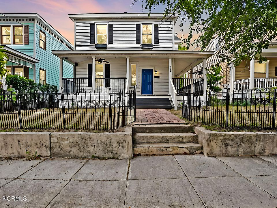 Experience the perfect blend of historic charm and modern convenience in this beautifully updated home. With updated electrical, windows, baths and kitchen you can enjoy contemporary living while appreciating the home's classic appeal. The main level features new luxury vinyl plank (LVP) flooring, and upstairs, you'll find new carpet in the two spare bedrooms and original hardwoods in the primary bedroom. The fourth room is ideal as a pocket office or cozy media room. The wrap-around front porch invites you to relax and enjoy southern hospitality on a beautiful historic tree lined street, while the back deck offers a private retreat. The property includes off-street parking accessible from the rear alley and a one-car detached garage that can serve as an excellent workshop or additional parking space. Just eight blocks from the river, this home is within walking distance to a variety of restaurants, shops, and the farmer's market. Don't miss this opportunity to own a piece of history with all the modern amenities you desire.