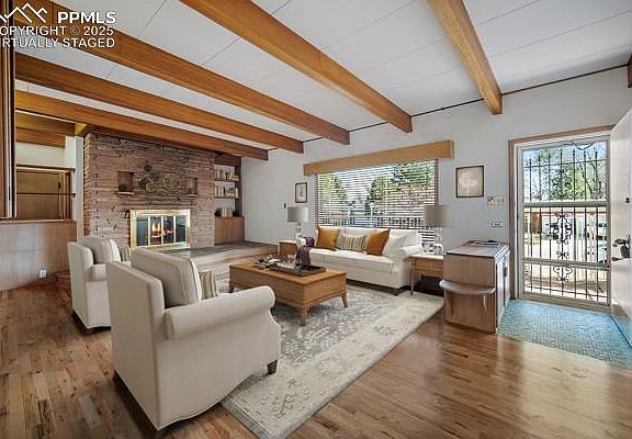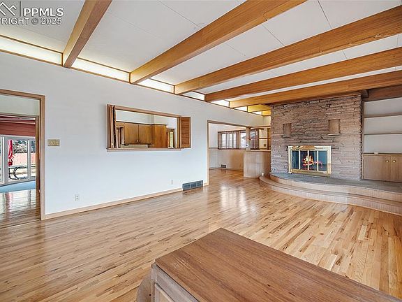Discover the charm of Mid-Century Modern living at 812 Orion Drive—a stunning 5-bedroom, 3-bath home tucked into a quiet Skyway Park neighborhood with award winning District 12 Schools. With classic MCM architecture, clean lines, and a seamless indoor-outdoor flow, this home offers timeless style and thoughtful updates throughout. Step inside to soaring ceilings, warm wood beams, and expansive windows that fill the space with natural light. The spacious open-concept layout features a striking stone fireplace with built in shelving, an elegant dining area, and a fully updated kitchen with all-new appliances and sleek cabinetry that blends form and function. Retreat to the large private primary suite with a -suite bath and a door that leads to the enclosed patio. While 2 additional bedrooms on the main level offer flexible space for family, guests, or a home office. An enclosed patio creates the perfect all-season retreat—ideal for relaxing, entertaining, or enjoying the mountain air in privacy. Outside, mature trees and thoughtful landscaping frame this peaceful property. The lower level offers 2 more bedrooms and bath. The huge family room with another fireplace and tons of tastefully built in cabinets and shelving for storage. This space is large enough to entertain the family or guest for game night. Hidden and tucked away is a built in safe for your treasures. Huge laundry room with an area for a shop, hobby room, etc. and cedar lined closet space for storage. The oversized big 2 car garage has 2 attached large storage sheds. This home is a must see! Just minutes from Bear creek park, trails for hiking and biking, Old Colorado City, The Broadmoor, Garden of the Gods, Downtown. One of the best location Colorado Springs has to offer. Mid-century style, modern upgrades, and mountain living—this home has it all.