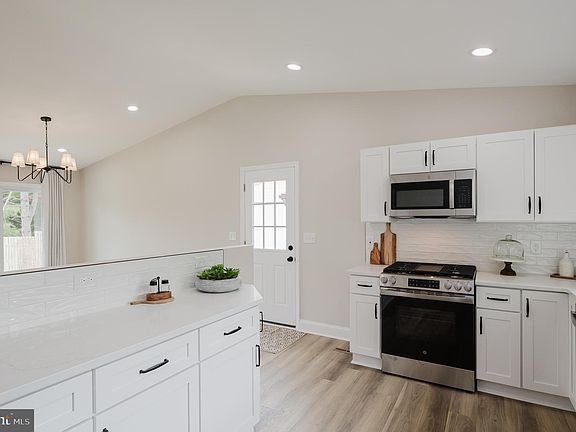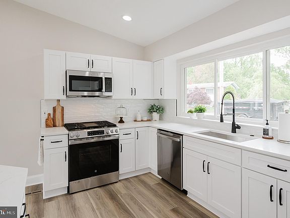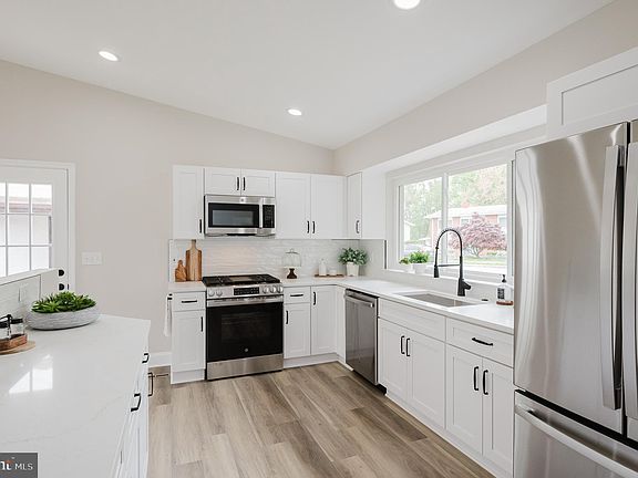 Welcome to this impeccably updated 3-bedroom, 3-bathroom rancher in the desirable Scotts Hill community of Pikesville, which immediately impresses with its well-landscaped curb appeal. Inside, the spacious open floor plan is accentuated by high vaulted ceilings and luxury vinyl plank flooring that flows throughout, crafting a modern and inviting atmosphere. The kitchen is the heart of the home, equipped with white cabinetry, quartz countertops, and new energy-efficient stainless steel appliances. Recessed lighting and gas cooking make this space both functional and stylish. The living and dining areas blend seamlessly, featuring double sliders that open to a charming outdoor patio—perfect for relaxation or entertaining guests. All three bedrooms are conveniently located on the main floor. The primary suite offers a serene retreat, complete with a tastefully tiled ensuite bathroom and a spacious walk-in closet. Two additional bedrooms provide comfort and utility, equipped with ceiling fans and ample closet space, served by a well-appointed full bathroom. The lower level extends the living space, featuring a cozy family room with walk-out access to the backyard patio, another full bathroom, and a versatile den that can serve as an additional bedroom or home office. An unfinished area offers practical solutions for laundry and storage. Outside, the home boasts two paved patios and a partially fenced yard that backs onto tranquil woods, providing privacy and a picturesque setting. The property includes a two-car concrete driveway and additional street parking. It’s important to note that while the home has undergone extensive renovations, the roof and HVAC systems are about 10 years old. Ideally situated in a friendly, walkable neighborhood, this rancher is conveniently close to the Metro, shopping, dining options, Sudbrook Park & Playground, and the Pikesville Farmers Market. With easy access to major highways, this home combines modern updates with unmatched location and convenience, ready for its new owners to enjoy.