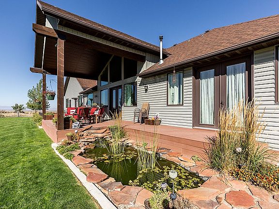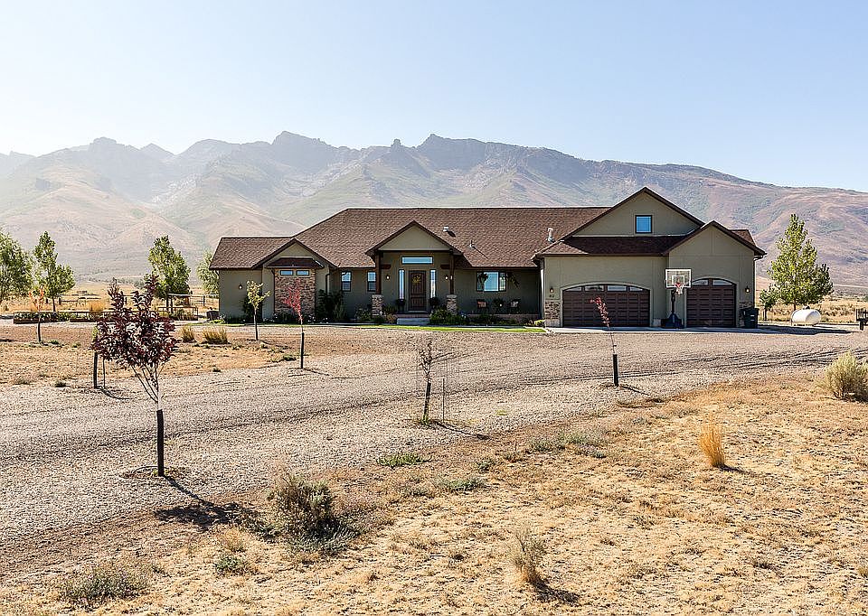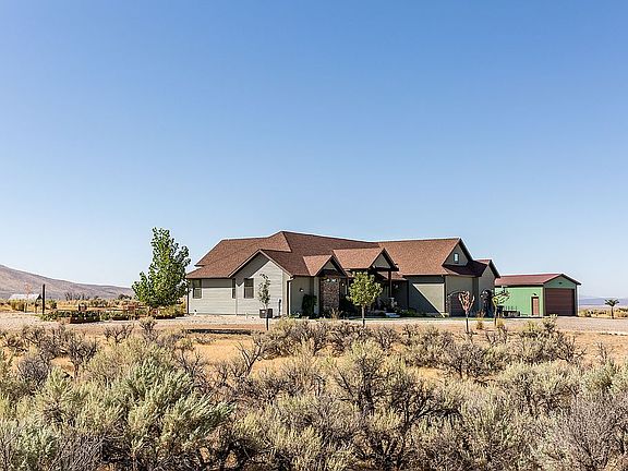 Beautiful custom built rambler with stunning Ruby Mountain Views! This large family-friendly home may have the best location in Spring Creek. The living area features an open great room concept with soaring vaulted ceilings, beautiful stone chimney surrounding the pellet stove, custom niches and hardwood floors throughout. The spacious kitchen is equipped with double-ovens, gas cooktop range, drawer microwave, and beverage refrigerator. Huge island boasts second sink, garbage disposal and double thickness, chiseled edge granite. There are granite countertops throughout the kitchen, bathrooms, laundry room and basement wet bar. The Master Suite is extremely large and includes: two walk-in closets, huge double vanity, oversized jetted tub and enormous shower with two showerheads and marble bench. The two main floor guest rooms have exterior doors leading to patio. The basement has a huge family room, wet bar, bathroom and large bedroom. The yard has been meticulously landscaped including: full irrigation, flower beds, lots of grass, many trees, vegetable garden boxes, a sand volleyball court, horseshoe pits and an 18' x 32' shop. You'll spend countless hours enjoying the unobstructed views of the Ruby Mountains from the covered rear deck. For information call or text Keith at 775-397-3981.