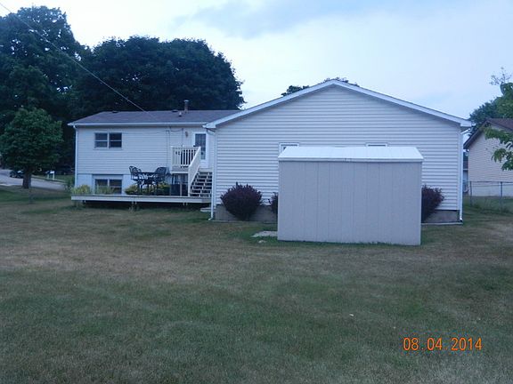 This 3bd/1.5ba home is clean and move-in ready with tiled floors in bath and hardwood flooring in kitchen and dining room. Kitchen has ample cabinet and counter space with newer appliances. Lower level family room, laundry room and master bedroom are on the same level. Plenty of closets and storage space. 2.5 car HEATED garage with 220 electrical service, utility shed for lawnmower and garden tools, great location in quiet neighborhood, spacious fenced yard with w/newer deck Located within walking distance to library, restaurants, river, schools, grocery store, and business district! This is a must see!