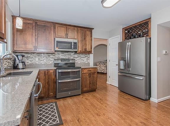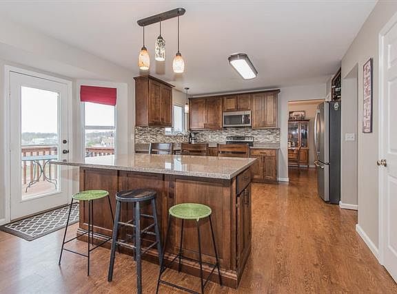 Beautiful 2-sty on one of the largest lots in subdivision! Bright & cheery & tastefully updated; Kitchen w/42in cabs w/crown molding, granite countertops, glass tile backsplash, new lighting, appliances, wine rack, & new flooring thru out entire mnflr! Breakfast rm w/island w/breakfast bar & built in cabinets, pendulum lighting, & bay leading out to deck overlooking nicely manicured yard. TWO pantries, built in desk stays. Main flr Fam rm w/wd burn frplc, & bay window. Main flr laundry w/built in cabs. Mnflr 1/2 bath w/new granite, toilet, & lighting. Wrought iron basket spindles really set off staircase to FOUR upper level bedrms. Full bath updated w/new granite, tile flr, tile shower, toilet & lighting. Master suite w/vaulted ceiling, bay window, Mstr bath w/walk-in closet, tiled shower, flooring, tile backsplash, mirrors, lighting & dual antiqued vanities. Walk-out basement w/FIFTH bedrm! Awesome Fam rm for entertaining! Oversized patio, Oversized 2 car gar & so much more!