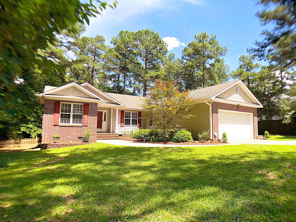 Situated on a private cul-de-sac in the heart of the gated Woodlake community. This home offers a nice open, split bedroom floor plan. New hardwood floors installed in 2016, fresh paint throughout, and 2018 Whirlpool Gold SS Appliances. This home has a HUGE backyard with nice covered deck and patio, great for entertaining, and a large fully fenced in yard with great shade as well. Great location and easy commute to Southern Pines, Pinehurst, Pope & Bragg! Priced to sell, you do not want to miss this one. Schedule your showings today.