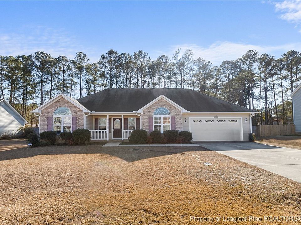 4 Bedrooms and 2 Full Bathroom Ranch waiting for you. New paint and Carpet throughout. As you enter you will step into a beautiful, tiled Foyer and options to enter your Living room with Gas log Fireplace or turn either way to enter additional bedrooms. As you pass through LR and Kitchen/Dining room You have access to the Primary room, Laundry room, or Garage. Primary room Boast Tray Ceiling and bath with a tiled trimmed, Jetted tub to soak and relax, double vanity, Separate shower & Ceramic flooring in bathrooms & kitchen. For the better touches enter the backyard through your large, covered patio. A must see Two story shed in backyard. All of this in a quiet rural subdivision sitting on 0.43 acres.