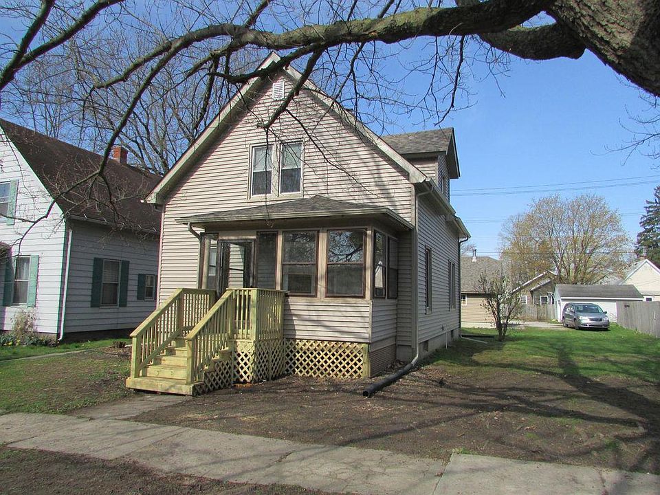 SOLID AS A ROCK! This 3 bedroom, 1 3/4 bath home is ready for it's new owner. The main floor has exposed hardwood floors, main floor bedroom with attached 1/2 bath, formal dining room and nice large kitchen! Upstairs features 2 nice-size bedrooms and a full bathroom. IN 1978, a completely new foundation was put under the home and in 1986 was the garage! SOLID! So no Michigan basement in this home which means tons of room to put a huge rec room in the basement. The main floor laundry also has a stand-up shower which is a perfect place to get cleaned up after work. The garage is a large 1.5 car with a walk up attic. The yard is big too. There's a NEW roof, NEW siding, NEW front deck and NEW water heater. Hey, this home may need a little cosmetic sprucing up, but with the enclosed front porch, you can relax after painting. Thank you for considering. All appliances remain.