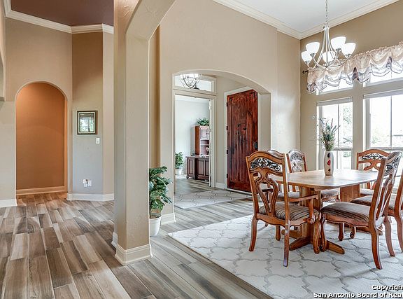 Located on 8th fairway w views of course & Hill Country. Newly renovated w wood-look tile n main living & wet areas, wood stair treads to upstairs game rm w full bath & new carpet in bdrms. Kitchen redone w 15" deep custom cabinets, quartz counters, backsplash, SS appliances + double convection ovens & reverse osmosis sink. Bathrms renovated w quartz & granite counters & faucets. New low-e windows, spray foam n attic, 15 Seer HVAC, sprinkler system, in-wall vacuum, 600 sq ft patio, balcony w views!