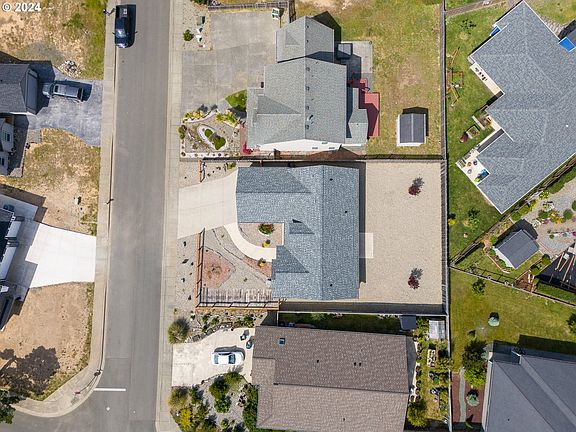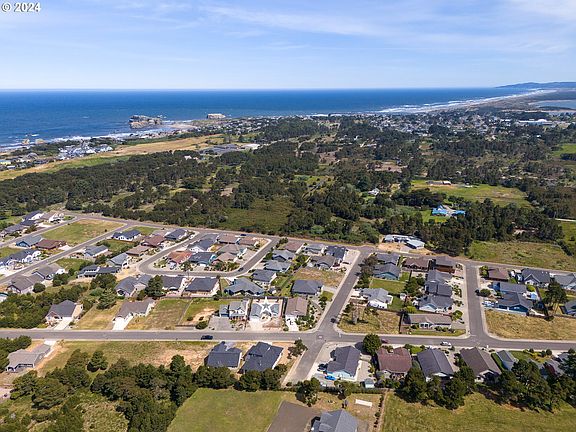 HIGH DEMAND OCEAN TRAILS HOME! Built in 2020, Move-in ready, single-level gem offers 3 bedrooms and 2 baths, exuding a fresh, almost-new charm. Nestled just a short stroll from pristine, world-class beaches, this residence is perfectly situated in a high-demand area. Step inside and be captivated by the bright, open split layout designed for seamless entertaining. The vaulted great room ceilings enhance the inviting, spacious ambiance, while the master suite promises luxury with its tiled walk-in shower and expansive walk-in closet. This home is adorned with quality finishes throughout, including stainless appliances, sleek vinyl plank flooring, a highly efficient ductless heat pump, custom cabinetry, elegant Corian counters, and a cozy stone hearth & mantle. The concrete patio leads to a generous fenced backyard. Recent all around installation of xeriscape landscaping for those seeking to not maintain a large lawn! Experience coastal living at its finest in this exceptional Bandon home. Check out the video tour to see just how extraordinary this home truly is and schedule your visit!