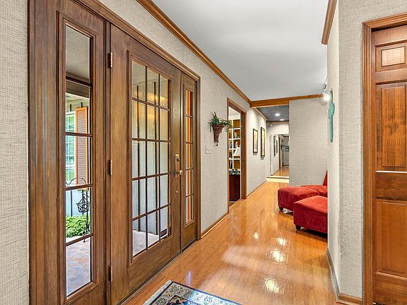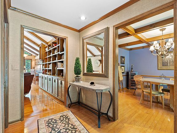 From the moment you pull in, you’ll be captivated by all the beauty and character this property has to offer. The professionally landscaped 0.82 acre lot boasts mature trees that create a peaceful and inviting atmosphere. As you enter the home, you’ll notice the natural light pouring in through the vast wall of windows in the great room and the beautiful hardwood Mannington floors. The formal dining room, containing a stunning box beam ceiling design and chair rail molding is located just off the foyer. The kitchen provides ample storage, seating, and counter space, along with stainless steel appliances, and a built-in double oven. The great room is a very welcoming space, with a direct vent fireplace, a wall of built-in shelving, and a beamed cathedral ceiling. A second living area is located in the front of the home. Currently used as an office, this functional space has a second fireplace, built in bookshelves, and gorgeous property views. There are four spacious bedrooms, with one functioning as a wardrobe room. The master bathroom has several appealing upgrades, including a tiled steam shower, a jacuzzi tub, and a double vanity, all on heated tile flooring. Also off the master suite is an incredible screened-in porch with a cathedral ceiling, where you can enjoy your backyard oasis. Downstairs is a large basement with tons of finished living space as well as a large unfinished workshop area. A third stone fireplace and a fourth full bathroom are also located in the basement. Don't miss your opportunity to see this wonderful home!