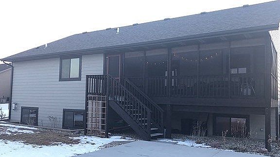Beautiful 5 bedroom 3 bath executive ranch home for sale in west Sioux Falls. The spacious kitchen has upgraded cabinetry and stainless steel appliances. Enjoy meals on the breakfast bar or in the dining area right off the kitchen. Engineered hardwood floors throughout the main level. The master bedroom is complete with a large walk in closet and a bathroom. The master bathroom has a tiled walk in shower, Jacuzzi tub and double sinks. This home is perfect for entertaining with a pool table, fireplace, entertainment area and a wet bar in the lower level. The 3 car garage is finished with a large work bench. A new fence was installed in the summer of 2016. This house has plenty of entertainment outside with a 600 sq ft basketball court in the backyard and a large screened in covered deck. Beautifully landscaped with a 200 sqft raised garden bed in the backyard. Walking distance to Discovery Elementary, Prairie West Library and Memorial Middle School.
