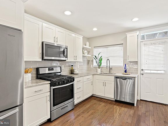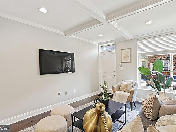 This Gorgeous, 2 Bedroom, 2 Full Bath, completely renovated Canton Rowhome with 4 years left on CHAP Tax Credit, Private Rear Patio & Rooftop Deck, Must be seen! Enter into the Bright Main Level featuring an Open concept floor plan, gleaming hardwood flooring and fresh paint throughout the home. Discover the Living Room featuring the impressive Coffered Ceiling and Recessed Lighting which opens to the Dining Room and on to The Gourmet Kitchen. The kitchen features Stainless Steel Appliances, White Shaker Cabinets, Gas Cooking, Granite Counters, and access door to the rear courtyard patio. Make your way upstairs to find the Primary Bedroom ensuite with skylight, and the Primary Bath with stand-up shower, custom tile work, and large vanity. The Primary Bedroom features sliding glass doors leading to the deck and stairs to the Rooftop deck with views of the city. A Second Spacious Bedroom and another Full Bath with custom subway and herringbone tile surround rounds out the Upper Level. Continue to the Private Courtyard Patio, perfect for Entertaining! This Home is Walking Distance to Restaurants, Bars, Shopping, Canton Waterfront and all that Canton Living Has to Offer! Don’t Miss It!