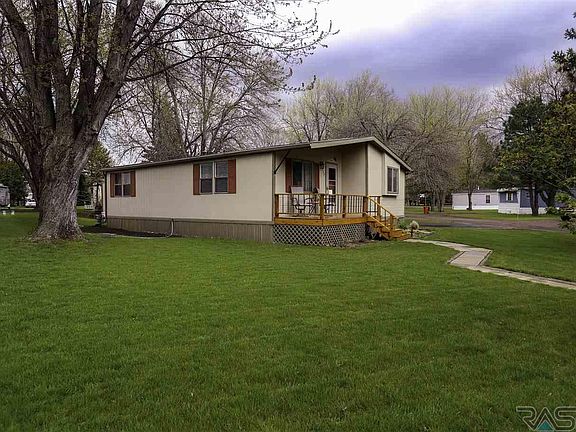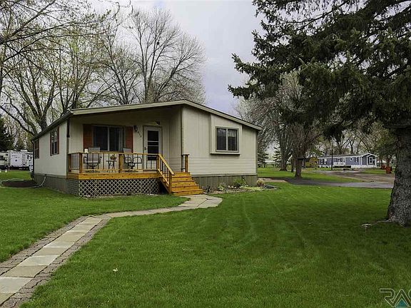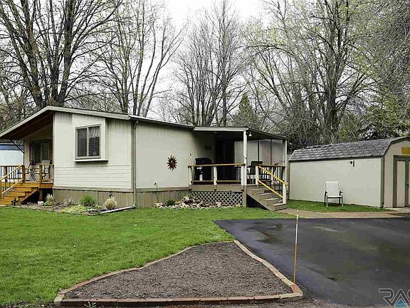 A true diamond in the rough, more bang for your buck, more bounce for the ounce...I could go on, just trust me when I say this is NOT your typical mobile home. This home has been remodeled to the max! I actually dare you to find another home in this price range with these features and level of livability....you won't, not in Sioux Falls or anywhere close. This is truly a home you have to see to believe...upgrades galore! It's situated in a quiet community with beautiful mature trees and well kept landscapes. It offers 2 bedrooms and 2 baths, a ginormous living room that opens to the well appointed kitchen with island and spacious dining area. The yard is immaculate and can be enjoyed from either of the 2 covered porches. So, if you're looking for an affordable home that has had all the work done already....look outside the box and check this one out. I'm telling you, it will NOT disappoint.