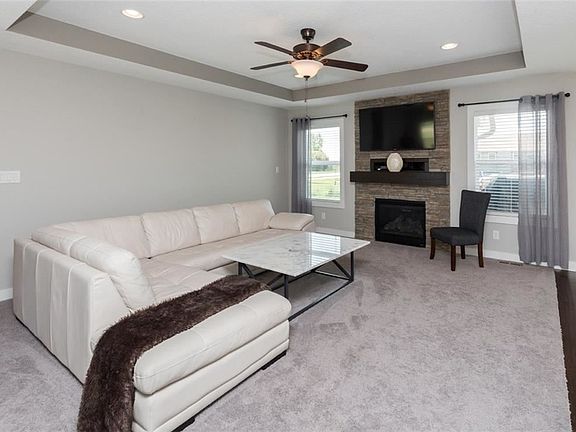 Amazing opportunity in the desirable Meadowlark South neighborhood in Grimes! This Orton Homes resale that was built in 2015 features 3 bedrooms, 2 bathrooms on the main level, all white kitchen, tile backsplash, full stone FP, oversized deck, fenced in yard, and wait until you see this basement! The lower level features an awesome wet bar with a fridge, stone wrapped island, floating shelves, with a huge living room stoned wall w/ an electric FP, 4th bedroom, office, and 3rd bathroom to top the basement off. This home features just over 2,500 SF of finish in the DCG school district!
