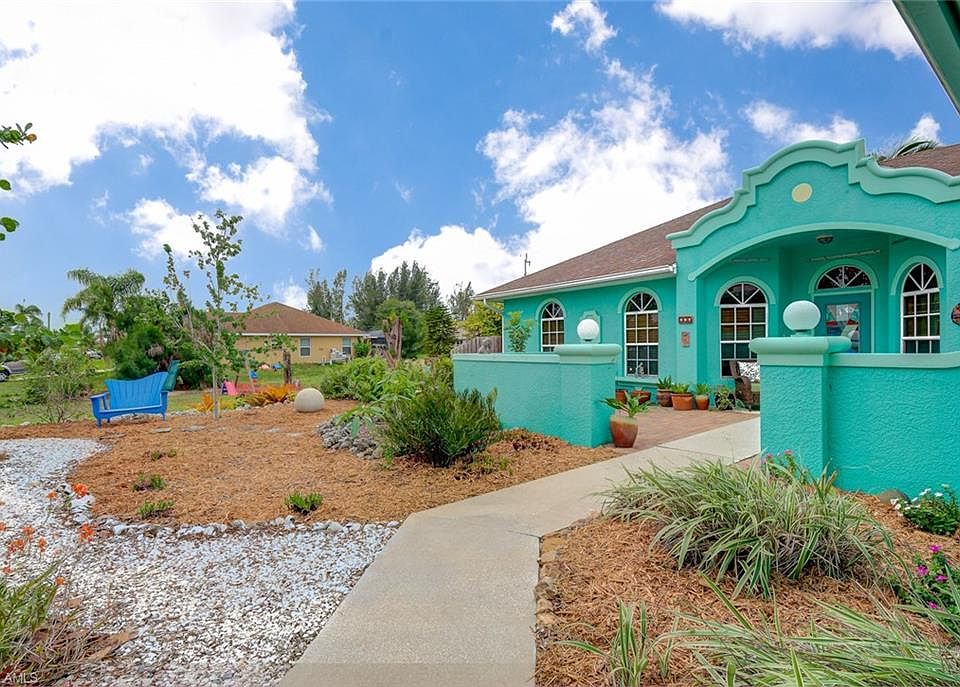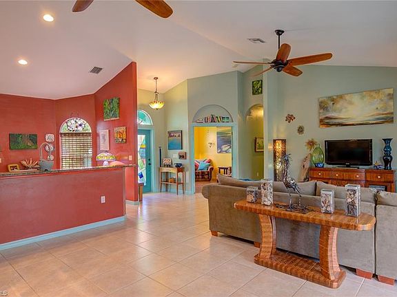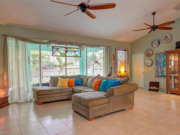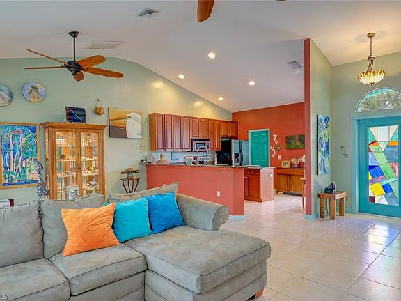 Beautiful, custom-built and artfully decorated, this home is ready to move in! The quality of construction is evident everywhere you look and is accentuated by the soaring vaulted ceilings inside and the unique arched windows and stucco trim outside. There is plenty of room for a pool, and from the courtyard in front to the shaded back yard, the various plantings lend a privacy to the outdoor spaces. This home is well thought-out for entertaining or quiet reflection---whichever you choose. It is a relaxing and unique property that is perfect for a growing family or snowbirds eager to embrace the fun Florida art scene. A very short drive to the art galleries in Matlacha or the many awesome island restaurants make this home even more attractive!
