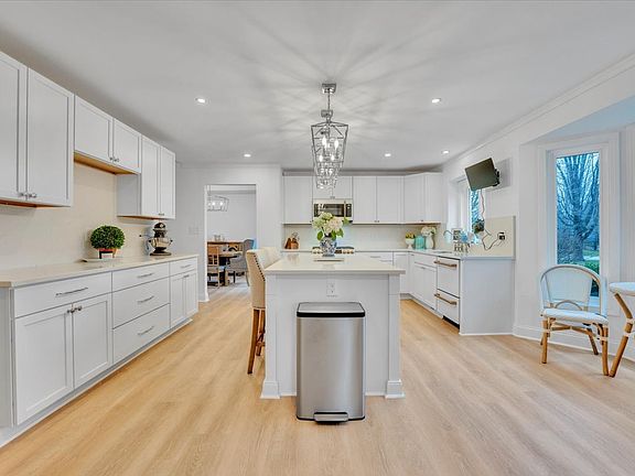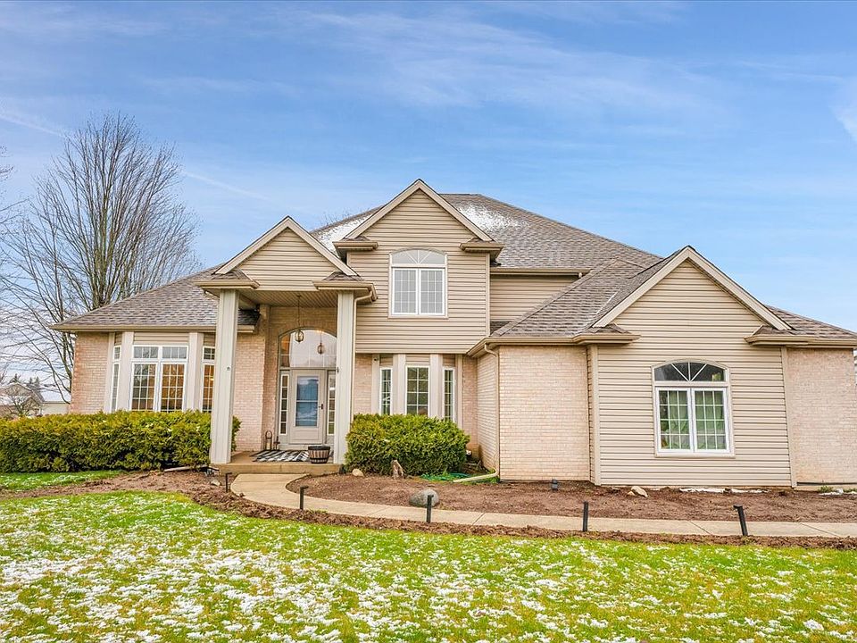This exquisite 4-bedroom, 3-bathroom home offers modern luxury and spacious living on a sprawling 1-acre lot. As you step inside, you're welcomed by an abundance of natural light filtering through the newer Pella windows, illuminating the stylish interior. The kitchen is a culinary masterpiece, boasting quartz countertops, a sleek backsplash, and pristine white cabinets, complemented by high-end GE Cafe appliances and column fridge and freezer with a massive amount of room for any size family. Adjacent to the entry way is a sprawling main floor office, complete with French doors for added privacy, ideal for anyone working remotely from home. A heated four seasons room with vaulted ceiling and 16 floor to ceiling windows offering a panoramic view of the property providing ample natural light making it an ideal spot for relaxation and enjoying the beauty of the surrounding landscape throughout the year Upstairs, the master suite is a serene retreat, featuring a spa-like bathroom with a luxurious soaking tub and a separate walk-in shower. The remaining bedrooms are generously sized and share access to a beautifully appointed bathroom. The finished basement offers additional living space, including a dedicated workout area, perfect for staying active and healthy. Outside, the expansive 1-acre lot provides plenty of room for outdoor enjoyment, with a large playground area and swing set to keep children entertained for hours. The backyard also features a patio area for relaxing or entertaining guests. For car enthusiasts or hobbyists, the property includes a rare 4-car heated and insulated garage, providing ample space for vehicles, storage, or a workshop. Additionally, the home is equipped with a top-of-the-line whole house water filtration system, ensuring clean and fresh water throughout. This exceptional home combines luxury, functionality, and outdoor enjoyment, offering a truly unmatched living experience for its fortunate residents.