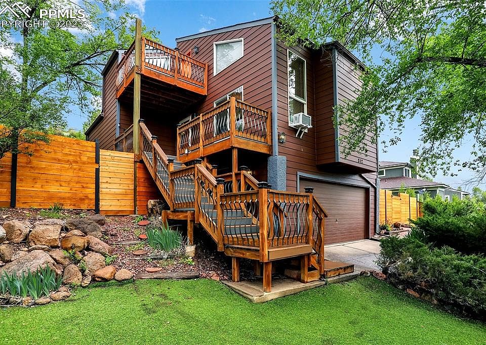 Welcome to your dream home in Colorado! This stunning property on a quarter-acre lot offers ample space and privacy for you and your loved ones. Situated in a tranquil neighborhood at the bottom of the foothills, you'll have easy access to miles of scenic trails for outdoor adventures (neighborhood trailheads are just a short walk from your front door). The yard is surrounded by beautifully crafted new fences, providing both security and aesthetic appeal. If you're a dog lover, you'll be delighted by the spacious grounds that provide plenty of room for your furry friends to roam freely. Step into the backyard oasis and discover a fantastic deck and a soothing hot tub, offering endless opportunities for relaxation and entertainment. The backyard also has a chicken coop, perfect for those looking to embrace the farm-to-table lifestyle. With a captivating city-facing upstairs balcony, you can enjoy breathtaking views while sipping your morning coffee or unwinding in the evening. Wildlife often graces the property, adding a touch of natural beauty to your everyday life. Inside, you'll be greeted by brand new durable Luxury Vinyl Plank flooring throughout the entire home, creating a modern and stylish ambiance. Both bathrooms are fully remodeled. Additional features include brand new kitchen appliances and a freshly painted interior, ensuring a move-in ready experience for you and your family. And let's not forget the fantastic night view of the city, which you can enjoy from the comfort of your front window. Be sure to check out the virtual tour! Located in the sought-after Cheyenne Mountain School District NO. 12, this home ensures an excellent education for your children. Don't miss this opportunity to own a slice of Colorado paradise. Make this house your forever home and start creating lifelong memories in this incredible space. Schedule a showing today and let your dreams become reality!