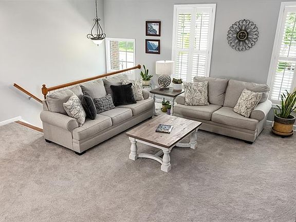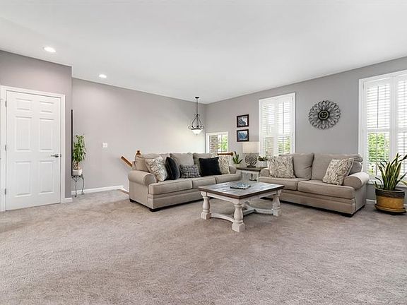 First time offered on the market! Lovingly maintained home. Stately Brick exterior, w/bright & inviting entry opens into large living room w/Plantation shutters, newer carpet/paint, & gas fireplace. Spacious kitchen w/stainless appliances, plenty of cabinet space, under counter lighting, tiled backsplash & large dining area w/large windows and French door opening to your private deck. Main floor laundry room and powder room round out this space. Fabulous space in the owners suite with private bath and walk-in closet. Two additional bedrooms upstairs are nicely sized, a second full bath, and linen closet all on this level. Enjoy the lower level finished walk-out for another living space to enjoy. French doors lead to a level patio and yard filled with a flower garden that doesn't disappoint. Perennials will come back year after year! Lots of storage, Two car garage and large driveway. Enjoy the amenities of Heritage Creek to include Pool, Clubhouse, and sidewalk streets.